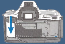El compartimento de la película es el hueco donde se aloja la película. En él no puede entrar la luz más que en el momento de la exposición, y a través del obturador. Si no es así la película se velará y se perderán las fotos. Por cada exposición el carrete va avanzando y enrollándose en un cilindro. Cuando se acabe la película se volverá a enrollar dentro del carrete, y así estar protegida de la luz al sacarla de la cámara. A la hora de manipular la película dentro de compartimento se debe mantener fuera del polvo y no presionar el obturador, que pueden ser unas delicadas cortinillas como en la imagen. |