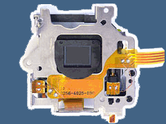 En fotografía digital no existe la película. Por tanto no tiene sentido hablar de un compartimento de película. Sin embargo este hueco suele estar ocupado en las cámaras digitales por un sensor como el de la imagen. En las cámaras digitales la distribución de los mecanismos internos es diferente totalmente. La película libera mucho espacio, sin embargo también hay que buscar un hueco para alojar las baterías, la pantalla LCD o TFT y la unidad de tarjeta de memoria, así como chips adicionales tales como procesadores de imagen. |