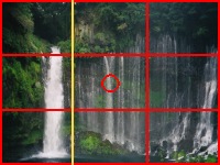 Situamos el sujeto y el horizontes en sus tercios correspondientes. | En esta imagen los objetos se ajustan a los dos tercios verticales. | En esta imagen la catarata se ajusta a un tercio vertical. |